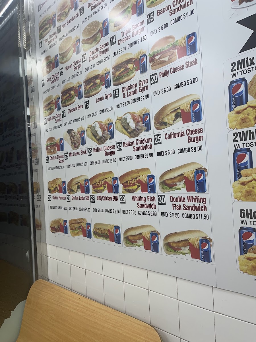 Served on hero bread with lettuce, tomato, onions, pickles, ketchup, and mayo.